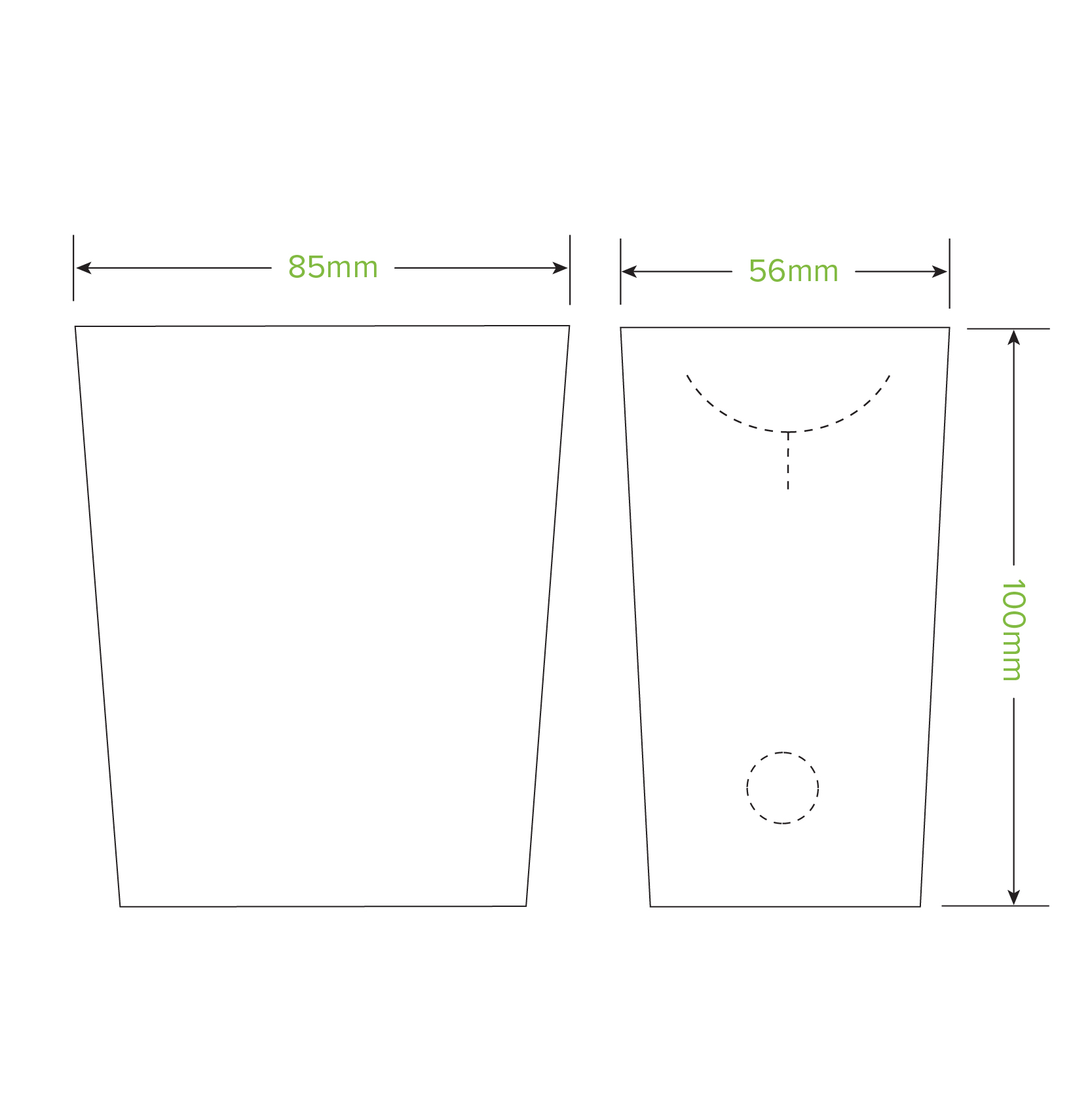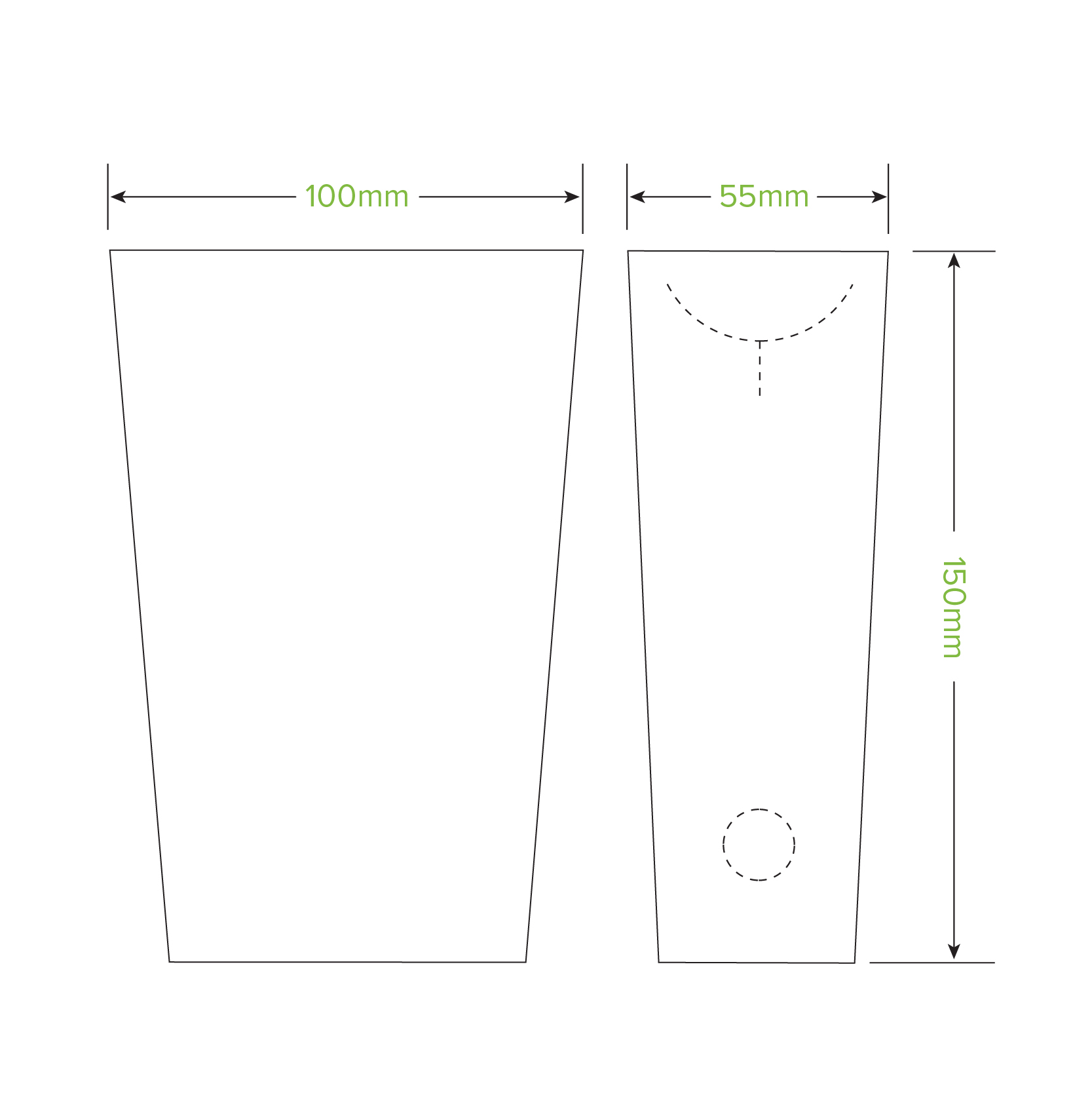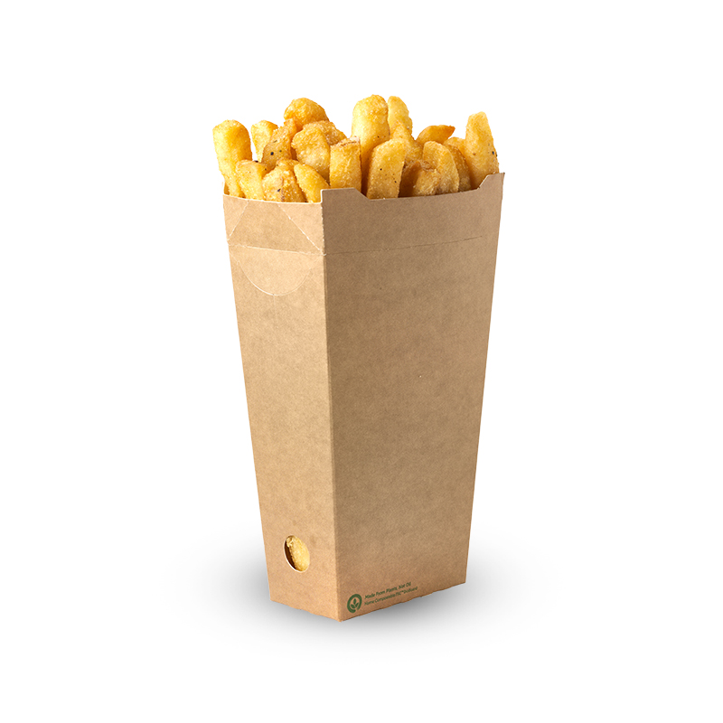 BioPak chip cups are unlined and closable to prevent spillage with die-cut steam vents to prevent your chips from going soggy.