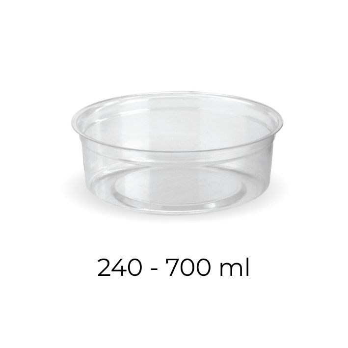 BioPak clear PLA unbranded bio-bowls are perfect for delicatessen use such as dukkah, salad, olives, fetta, dips, spices, confectionary and much more.