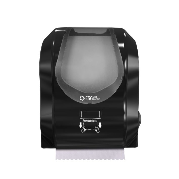 Holding up to 243 metres of ESG Roll Towel 380-cs, this high-capacity unit minimizes maintenance and downtime. The translucent front panel lets you easily check when a refill is needed, while its sleek black or white finish blends seamlessly with any décor.