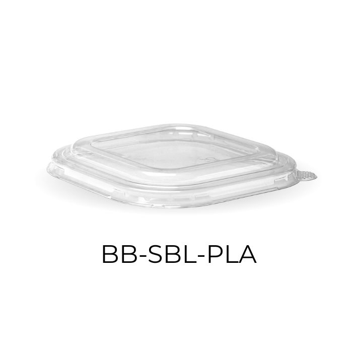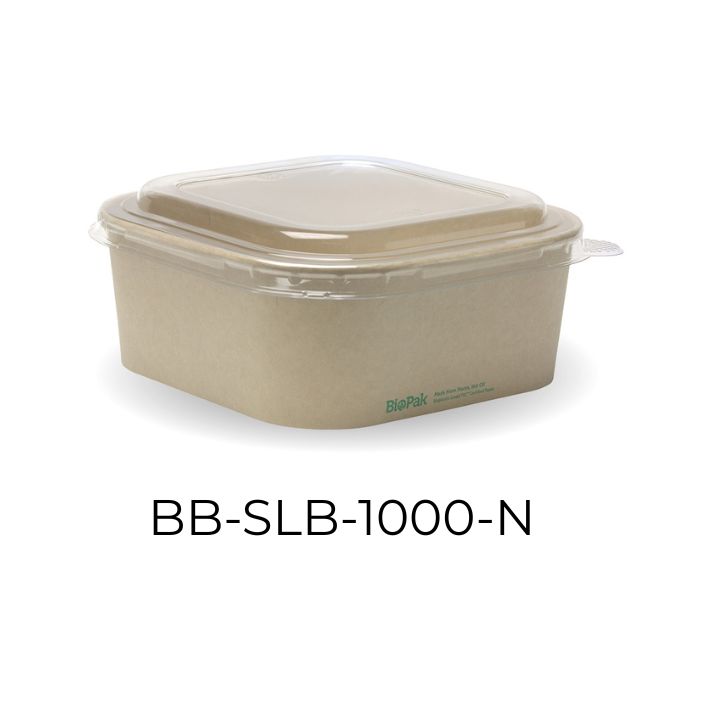 There are a three lid options for the BioPak square paper takeaway food containers.