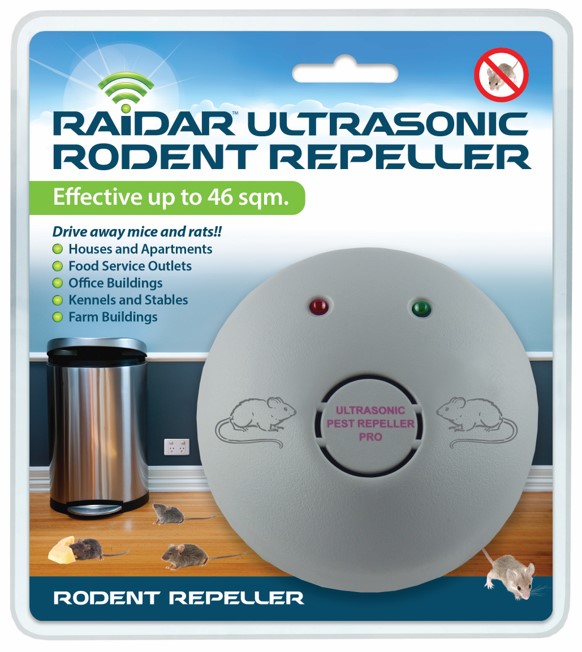 Keep your home rodent-free the easy way with the Raidar Indoor Ultrasonic Rodent Repeller. This simple plug-in device uses ultrasonic sound waves to deter mice and rats—no chemicals, traps, or mess. Just plug the unit into a power point closest to the problem area and let it work silently in the background.